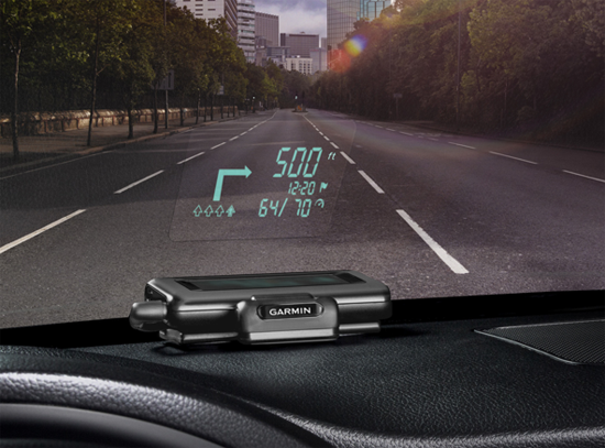 Bereits Anfang Juli hatte Garmin ein portables Heads-Up Display (HUD) angekündigt, welches sich per Bluetooth mit den Apps der Garmin-Gruppe (unter anderem Navigon Europe (€ 59,99 im AppStore) und Garmin Streetpilot (€ 79,99 im AppStore)) verbindet und hieraus verschiedene Informationen verwendet. Teilweise bereits in Autos eingebaut, projezieren diese Displays Informationen von Innen auf die Windschutzscheibe, so dass sie noch besser im Blickfeld des Fahres liegen, ohne diesen dabei jedoch allzu sehr abzulenken oder zu stören. Die Stromversorgung stammt dabei aus dem Zigarettenanzünder. Zusätzlich besitzt das HUD auch noch einen USB-Port, über den Strom auf Wunsch auch an das dort angeschlossene iPhone durchgeschleift wird. Zu den Informationen, die auf die Scheibe projeziert werden gehören die klassischen Turn-by-Turn Pfeile, die Distanz bis zum nächsten Wegepunkt, die aktuelle Geschwindigkeit, Geschwindigkeitsbegrenzungen und die berechnete Restzeit bis zum Ziel. Sogar die empfohlenen Fahrspuren, Verkehrsbehinderungen und Blitzer zeigt das HUD an. Dabei wird die Helligkeit so angepasst, dass die Anzeige sowohl bei Sonnenlicht, als auch bei Nacht gut lesbar ist.