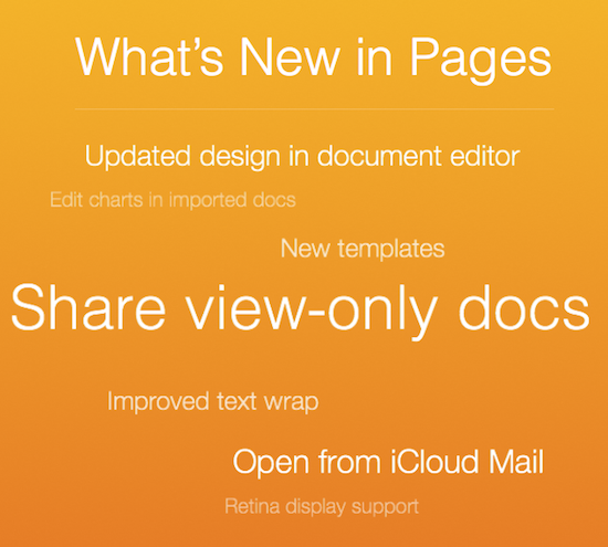 Nutzer, die sich am heutigen 38. Geburtstag von Apple auf der iCloud-Webseite anmelden und in eine der drei dort ansässigen iWork-Apps klicken, werden aktuell mit einem Info-Screen begrüßt, der auf zahlreiche Neuerungen hinweist. So besitzen nun alle drei iWork-Web-Apps eine verbesserte Unterstützung von Retina Displays, eine aktualisierte Bedienleiste und verbesserte Funktionen um Dokumente zu teilen. Letztere gestatten es unter anderem, die Inhalte in einer Nur-Lesen-Ansicht freizugeben. Zudem lassen sie sich nun auch direkt aus der iCloud Mail-App aufrufen. Für Keynote hält Apple die Möglichkeit parat, in importierte Präsentationen eingebettete Tabellen zu bearbeiten. Numbers spendiert Cupertino verbesserte Pop-Up Menüs und Pages erhält neue Templates und eine verbesserte Texteinbettung.
