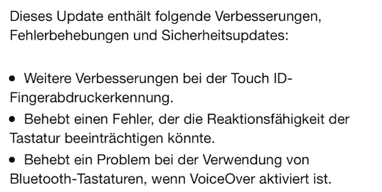 Apple hat vor wenigen Minuten iOS 7.1.1 veröffentlicht. Wie bereits an der kleinen Versionsnummernänderung zu erkennen, handelt es sich hierbei um ein kleineres Bugfix-Update, welches verschiedene Probleme von iOS 7.1 beheben soll. Letzteres hatte Apple Mitte März veröffentlicht. Die in Version 7.1.1 enthaltenen Fehlerbeseitigungen kümmern sich unter anderem um Probleme beim Ansprechverhalten der Tastatur und bei Verbindungen mit Bluetooth-Tastaturen wenn VoiceOver aktiviert ist. Außerdem soll die Aktualisierung weitere Verbesserungen bei der Erkennung von Fingerabdrücken bei Touch ID bringen. Das Update kann Over-the-Air direkt auf dem iPhone, iPad oder iPod touch geladen werden (Einstellungen > Allgemein > Softwareaktualisierung) und wiegt auf dem iPhone 5s exakt 26 MB.