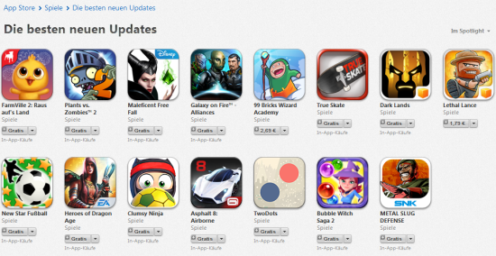 Eine neue Woche, eine neue Verbesserung im AppStore. So könnte Apples Motto derzeit lauten. Während man mit iOS 8 ab dem Herbst ohnehin verschiedene Verbesserungen für das virtuelle Kaufhaus einführen wird, laufen die Verbesserungen und Vorbereitungen auch jetzt offenbar schon auf Hochtouren. Erst vor zwei Wochen hatte man eine neue Möglichkeit eingeführt, Apps auf verschiedenen Kategorien besser auffinden zu können. In dieser Woche nun stürzt man sich auf frisch veröffentlichte Updates für Spiele. Diese werden nun in einer eigenen Sektion noch einmal prominent vorgestellt. Zuvor mussten sie sich noch eine Sektion mit den den "besten neuen Spielen" teilen. Trotz dieser diversen kleinen Verbesserungen erscheint mir der AppStore allerdings nach wie vor ein wenig unübersichtlich. Und daher nun viel Spaß mit