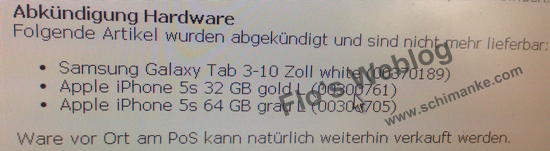Erst im vergangenen Jahr brachte Apple das iPhone 5s auf den Markt. Zeitgleich erschien zudem das iPhone 5s, was zeitgleich das Ende des damals gerade einmal einem Jahr alten iPhone 5 bedeutete. Lediglich das iPhone 4s überlebte neben den beiden neuen Generationen. Ein ähnliches Spiel könnte sich nun auch in diesem Jahr wiederholen. Zumindest, dann wenn man dem deutschen Mobilfunkanbieter Vodafone Glauben schenkt. Dieser informierte nämlich bereits seine Shops, dass das iPhone 5s bereits abgekündigt wurde und nicht mehr lieferbar sei. Hiermit lag der Anbieter auch im vergangenen Jahr beim iPhone 5 bereits (teilweise) richtig. Aktuell ist zwar nur von der 32 GB und der 64 GB Version in Gold die Rede, dies kann jedoch auch noch weitere Modelle betreffen. Gut möglich, dass dann die erwartete 4,7"- und die 5,5"-Variante des iPhone 6 die Rollen übernehmen, die im vergangenen Jahr iPhone 5s und iPhone 5c gespielt haben. Endgültige Gewissheit werden wir dann am kommenden Dienstag nach dem heiß erwarteten Event haben. (mit Dank an Martin!)