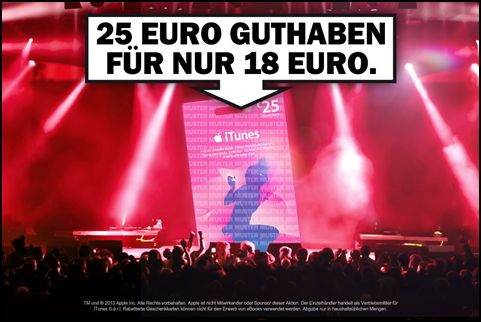 Achtung: Leider kann ich die Hinweise auf die günstigen iTunes-Karten nicht in jedem einzelnen Fall überprüfen. Checkt daher bitte vorher noch einmal ab, ob die jeweilige Filliale den Rabatt auch tatsächlich gewährt!