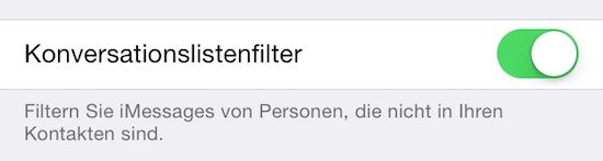 Neben dem Beinhalten der Apple Watch App bringt die dritte Beta von iOS 8.3 am heutigen Abend noch eine neue Funktion auf das iPhone. In den Einstellungen für die Nachrichten-App findet sich nun ein neuer Schalter namens "Konversationslistenfilter". Wird dieser umgelegt, verändert sich auch die Ansicht in der Nachrichten App. Hier erhält man nun am oberen Rand einen Umschalter, mit dem zwischen den beiden Optionen "Kontakte & SMS" und "Gefiltert" gewechselt werden kann. In der gefilterten Liste landen fortan iMessage-Nachrichten, die von einer Nummer stammen, die sich nicht in den auf dem Gerät hinterlegten Kontakten befindet. Hat man iMessage aktiviert, können diese auch direkt an Apple als Spam gemeldet werden. Hiermit reagiert Apple wohl auf die derzeit zunehmenden Spam-Wellen über die neuen Messenger wie WhatsApp, Facebook Messenger oder auch iMessage. Die andere Liste enthält neben den iMessages von bekannten Kontakten auch sämtliche SMS. Diese werden also nicht gefiltert.