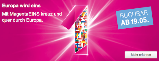 Am Wochenende sorgte die EU-Kommission für einigermaßen bedrückte Stimmung als bekannt wurde, dass mit der Abschaffung der Roamingkosten innerhalb der EU nun doch nicht zu Beginn des kommenden Jahres zu rechnen sei. Die Telekom wirft passend dazu nun seinen eigenen Hut in den Ring und bietet ab heute unter dem Namen "Europa wird Eins" an. Kunden in einem der MagentaEINS-Tarife können die Zusatzoption ab sofort zu einem Monatspreis von € 10,- zu ihrem Vertrag dazu buchen. Ist dies geschehen, können die im Vertrag enthaltenen Inklusivminuten und Inklusivdatenvolumen auch im europäischen Ausland (derzeit sind 32 Länder mit an Bord) genutzt werden. Allerdings hat die Zubuchung eine Mindestlaufzeit von 12 Monaten. Kann man hiermit leben, kann die Inlands-3fach-Flat für mobiles Telefonieren, SMSen und Surfen uneingeschränkt im EU-Ausland genutzt werden und umfasst alle Anrufe ins deutsche und europäische Festnetz und Mobilfunknetz.