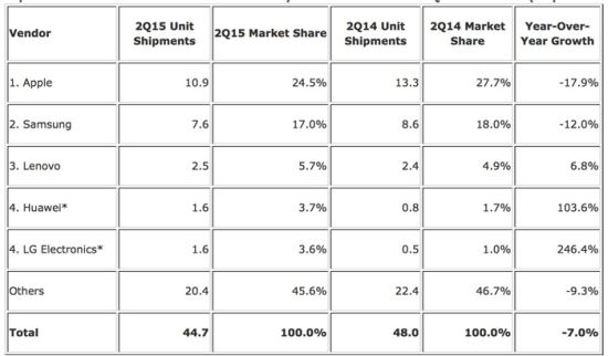 Wenn man einmal Apples Quartalszahlen der vergangenen Jahre beobachtet, ist bei allen Rekorden und erfreulichen Zahlen vor allem das iPad auf dem absteigenden Ast. Dabei sollte gerade das Tablet vor einigen Jahren noch die Post-PC Ära einläuten. Doch während sich der Mac nach wie vor prächtig an den Mann bringen lässt, sind die Absatzzahlen beim iPad rückläufig. Ob hieran das für den Herbst erwartete iPad Pro etwas wird ändern können, muss abgewartet werden. Allerdings steht Apple mit seinem iPad nicht alleine dar. Generell sinken die weltweiten Verkaufszahlen für Tablets seit Ende 2013 kontinuierlich, wie die unten zu sehende Tabelle von IDC deutlich zeigt. Darin ebenfalls zu sehen ist ein sinkender Marktanteil des iPads. Hier allerdings ist Vorsicht geboten, die nach wie vor vorhandenen knapp 25% (also immerhin ein Viertel aller Tablets) sind eigentlich noch immer ein überragender Wert, bedenkt man einmal, dass Apple nur mit einer geringen Zahl an Modellen am Markt ist, während die Android-Konkurrenz hier deutlich mehr Auswahl bietet. Man darf gespannt sein, wie sich der Tablet-Markt in den kommenden Monaten entwickelt und ob hier noch einmal neue Impulse gesetzt werden können.