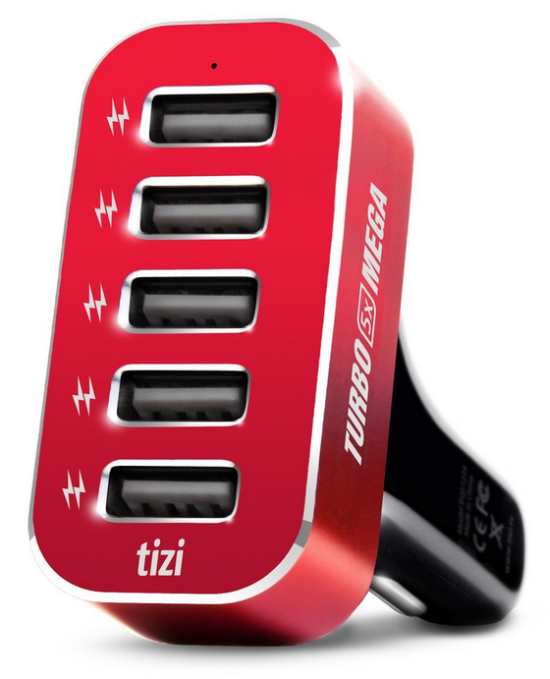Die Hoffnung, dass Apple den Akku des iPhones irgendwann doch nochmal soweit verstärkt, dass er länger als durchschnittlich einen Tag durchhält, tendiert bei mir inzwischen gegen Null. Daher habe ich mich inzwischen darauf verlegt, mich an meinen häufigsten Aufenthaltsorten mit Lademöglichkeiten zu versorgen. Dies bedeutet, diverse Netzteile in der heimischen Wohnung, diverse mobile Ladegeräte in Rucksäcken und auf der Arbeit, sowie Lademöglichkeiten im Auto. Für letzteres Umfeld hat der Münchner Zubehör-Anbieter Equinux nun sein Angebot weiter ausgebaut und bietet mit dem tizi Turbolader 5x MEGA nun ein abermals leistungsstärkeres USB-Ladegerät für den Zigarettenanzünder an. Dabei ist MEGA durchaus wörtlich zu nehmen. Die 60 Watt (12A) gestatten es nämlich sogar, bis zu fünf iPads gleichzeitig im Auto zu laden! Der dabei entstehenden Hitzeentwicklung wirkt der Turbolader mit einem Alu-Kühlkopf entgegen. Alle fünf USB-Anschlüsse verfügen über eine automatische Geräteerkennung, die die Ausgangsleistung entsprechend steuert. Jeder Port liefert dabei bis zu 2,4A.