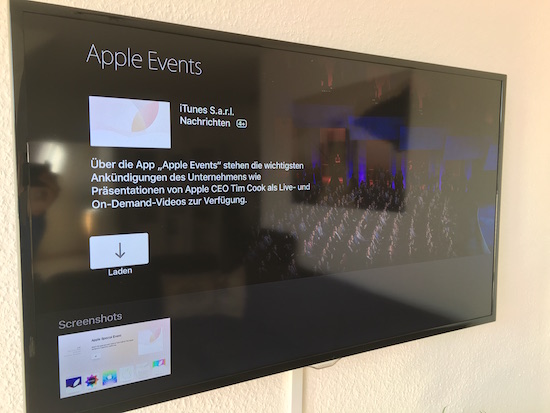 Wie auch immer das Gerät am Ende heißen wird, die Vorstellung wird man sich erneut live und in Farbe per Livestream des Events anschauen können. Apple hat hierzu bereits den entsprechenden Kanal auf dem Apple TV freigeschaltet. Anders als auf den älteren Generationen, auf denen der Kanal automatisch erscheint, muss man auf dem neuen Apple TV eine entsprechende App aus dem tvOS AppStore laden. Hierzu gibt man in der Suche einfach den Begriff "Apple Events" ein und lädt sich die App kostenlos herunter.