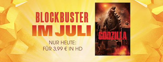 Apple versüßt allen Filmfans den diesjährigen Juli mit einer besonderen Aktion im iTunes Store. Unter dem Motto "Blockbuster im Juli" wird dabei jeden Tag ein neuer Film im iTunes Store für 24 Stunden auf lediglich noch € 3,99 im Preis gesenkt. Hierfür erhält man dann die Kaufversion des Titels in HD-Qualität. Am heutigen letzten Tag der Aktion handelt es sich dabei um den Actionfilm Godzilla (€ 3,99 im iTunes Store) aus dem Jahr 2014. Selbst wenn man aktuell keine Zeit hat, sich den Streifen zu Gemüte zu führen, kann ein Zuschlagen bei diesem Preis nicht schaden. Da es sich um die Kaufversion handelt, kann man den Film nach dem Kauf schauen wann man will und ihn auch jederzeit aus iCloud erneut kostenlos herunterladen. Viel Spaß!