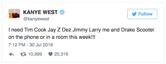 Als Konsequenz fordert West ein Treffen zwischen der Führungsriege von Tidal und Apple CEO Tim Cook innerhalb der kommenden Woche, um eine mögliche Kooperation (oder Übernahme) zwischen den beiden Diensten zu diskutieren. Sollte Apple Tidal tatsächlich schlucken, würde man auf diesem Wege relativ schnell Zugriff auf verschiedene exklusive Deals und Künstler erhalten, die Tidal bislang für sich gewinnen konnte.