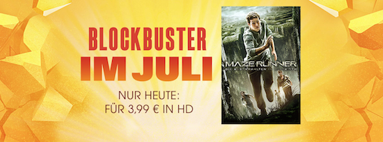Apple versüßt allen Filmfans den diesjährigen Juli mit einer besonderen Aktion im iTunes Store. Unter dem Motto "Blockbuster im Juli" wird dabei jeden Tag ein neuer Film im iTunes Store für 24 Stunden auf lediglich noch € 3,99 im Preis gesenkt. Hierfür erhält man dann die Kaufversion des Titels in HD-Qualität. Am heutigen Tag handelt es sich dabei um den post-apokalyptischen Action-Kracher Maze Runner (€ 3,99 bei iTunes). Selbst wenn man aktuell keine Zeit hat, sich den Streifen zu Gemüte zu führen, kann ein Zuschlagen bei diesem Preis nicht schaden. Da es sich um die Kaufversion handelt, kann man den Film nach dem Kauf schauen wann man will und ihn auch jederzeit aus iCloud erneut kostenlos herunterladen. Viel Spaß!