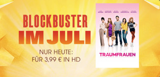 Apple versüßt allen Filmfans den diesjährigen Juli mit einer besonderen Aktion im iTunes Store. Unter dem Motto "Blockbuster im Juli" wird dabei jeden Tag ein neuer Film im iTunes Store für 24 Stunden auf lediglich noch € 3,99 im Preis gesenkt. Hierfür erhält man dann die Kaufversion des Titels in HD-Qualität. Am heutigen Tag handelt es sich dabei um die deutsche Romantik-Komödie Traumfrauen (€ 3,99 bei iTunes) mit Elyas M'Barek und Karoline Herfurth. Selbst wenn man aktuell keine Zeit hat, sich den Streifen zu Gemüte zu führen, kann ein Zuschlagen bei diesem Preis nicht schaden. Da es sich um die Kaufversion handelt, kann man den Film nach dem Kauf schauen wann man will und ihn auch jederzeit aus iCloud erneut kostenlos herunterladen. Viel Spaß!