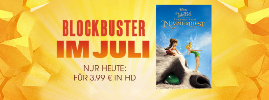Apple versüßt allen Filmfans den diesjährigen Juli mit einer besonderen Aktion im iTunes Store. Unter dem Motto "Blockbuster im Juli" wird dabei jeden Tag ein neuer Film im iTunes Store für 24 Stunden auf lediglich noch € 3,99 im Preis gesenkt. Hierfür erhält man dann die Kaufversion des Titels in HD-Qualität. Am heutigen Tag handelt es sich dabei um den Animationsfilm Tinkerbell und die Legende vom Nimmerbiest (€ 3,99 im iTunes Store). Selbst wenn man aktuell keine Zeit hat, sich den Streifen zu Gemüte zu führen (oder in dem Falle wohl eher die Kids...), kann ein Zuschlagen bei diesem Preis nicht schaden. Da es sich um die Kaufversion handelt, kann man den Film nach dem Kauf schauen wann man will und ihn auch jederzeit aus iCloud erneut kostenlos herunterladen. Viel Spaß!