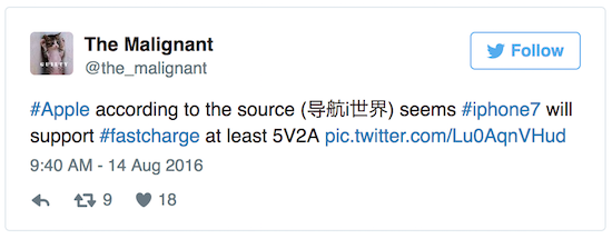 In der vergangenen Nacht tauchte zudem ein weiteres neues Gerücht auf, wonach das neue iPhone über einen neuen Chip verfügen soll, durch den ein schnelleres Aufladen des Geräts möglich ist. Da jedoch weder die Quelle verifiziert werden kann, noch der Twitter-Account, der das Gerücht verbreitet hat, sich in der Vergangenheit einen guten Ruf erarbeitet hat, würde ich dies mit einer gehörigen Portion Skepsis sehen.
