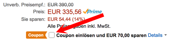 An und für sich mit einer unverbindlichen Preisempfehlung von € 390,- ausgestattet, lässt sich die Withings Activé derzeit bereits zum vergünstigten Preis von nur € 335,56 erwerben. Obendrein kann man zudem mit einem einfachen Mausklick einen Rabattcoupon in Höhe von € 70,- aktivieren, der dann ebenfalls vom bereits vergünstigten Preis abgezogen wird. Macht im Endeffekt also noch € 256,56 für eine stylische Smartwatch im Analog-Design.