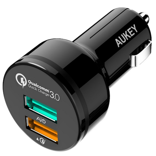 Das iPhone (ja teilweise auch das iPad) wird inzwischen von immer mehr Nutzern im Auto als Navigationsgerät verwendet. Das Problem dabei ist, dass man quasi dabei zusehen kann, wie die Kombination aus ständig eingeschaltetem Display und permanenter GPS-Verbindung den Akku in kürzester Zeit leer saugt. In diesem Szenario, aber auch wenn der Akku generell mal wieder schwächelt, kommt man um ein Ladegerät für den guten, alten Zigarettenanzünder, bzw. den 12V- oder 24V-Anschluss nicht drum herum. Aktuell gibt es in diesem Segment gleich zwei interessante Produkte zu vermelden. Zunächst richten wir den Blick auf den Gadget-Hersteller Aukey, der aktuell sein KFZ-Ladegerät mit 2 USB-Ports per Amazon-Rabattcode zum Sonderpreis anbietet. Statt der normalerweise veranschlagten € 11,99 werden so lediglich noch € 3,99 fällig. Auch wenn Aukey angibt, dass das Ladegerät mit Qualcomm Quick Charge 3.0 für HTC, Xiaomi und Co. optimiert ist, lassen sich hiermit auch iPhone und iPad problemlos laden. Nur QuickCharge wird von den Apple-Geräten nicht unterstützt. Um den Sonderpreis in Anspruch nehmen zu können, wird der Rabattcode GCRBV7SZ wie gewohnt kurz vor dem Bezahlvorgang an der Amazon-Kasse eingegeben, woraufhin der Rabatt vom Originalpreis abgezogen wird. Der folgende Link führt direkt zur Angebotsseite bei Amazon: AUKEY Kfz Ladegerät Dual Port