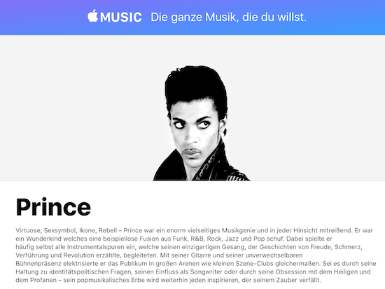Der folgende Link führt direkt zum Prince-Katalog auf Apple Music: Prince auf Apple Music