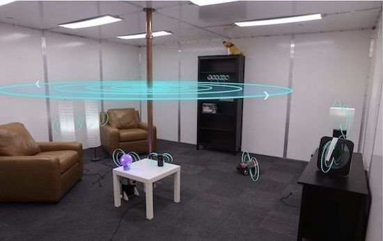 Passend zu diesem Ansatz hat Disney Research nun ein Wohnzimmer designt, welches über eine allgemeine Stromquelle verfügt, die sämtliche kompatiblen Geräte in dem Raum kabellos laden kann (via Ars Technica). Der Boden, die Decke und die Wände des Raums wurden mit Aluminium-Platten versehen und in der Mitte befindet sich ein Kupferrohr, welches das unsichtbare Spannungsfeld aussendet. Selbstverständlich handelt es sich noch um einen Prototypen in einem recht frühen Stadium. Unter anderem muss eine Person in dem Raum einen Mindestabstand von einem halben Meter um das Kupferrohr herum einhalten, um keinen Schaden durch die ausgestrahlten Wellen zu nehmen. Außerhalb dieses Sicherheitsabstands soll es allerdings nach Aussage der Weissenschaftler absolut sicher sein, sich in dem Raum aufzuhalten. Die zu ladenden Geräte wurden von Disney mit einem Dongle versehen, der sie über ihren normalen Ladeport auflädt. Hier läge es an den Herstellern, entsprechende Empfänger direkt in den Geräten zu verbauen.