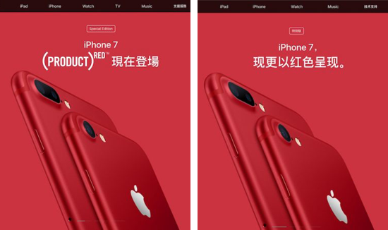 Das gestern von Apple vorgestellte rote iPhone 7 fügt sich wenig überraschend in Apples durchaus ausgeprägtes Sortiment an (Product)RED-Produkten ein, deren Erlös zum Teil an den Global Fund zur Bekämpfung von AIDS geht. Dabei wird der (Product)RED-Zusatz stets gemeinsam mit dem Produktnamen angegeben. Dies gilt allerdings offenbar nicht überall, wie die Kollegen von TechCrunch bemerken. So verzichtet Apple in China auf den Zusatz. Ein Umstand, der besonders dann auffällt, wenn man die chinesische (rechts) mit der taiwanesischen Webseite (links) vergleicht, die beide auf derselben Sprache basieren. In China aber verkauft Apple das Gerät "lediglich" als weitere Farbvariante.