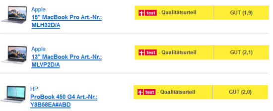 MacBook Pro Testsieger im Laptop-Test der Stiftung Warentest