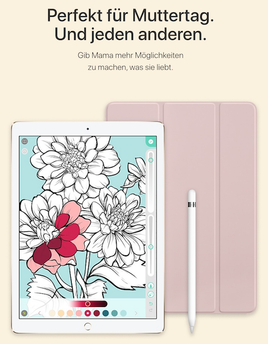 Am 14. Mai ist dieses Jahr der Muttertag. Und wie jedes Jahr hat Apple auch jetzt wieder auf einer speziellen Webseite seine "Geschenkideen zum Muttertag" veröffentlicht. Die Kaufempfehlungen aus dem hauseigenen Sortiment reichen dabei in diesem Jahr vom iPad Pro samt Apple Pencil bis zur Apple Watch Series 2 und den BeatsX Bluetooth-Kopfhörern. Apple unterteilt dabei seine Geschenkideen in die vier Kategorien Neuheiten, Kreativität, Gesundheit & Fitness und Kopfhörer & Lautsprecher. Wer also noch auf der Suche eines hochwertigen Geschenks für seine Mama am diesjährigen Muttertag ist, wird vielleicht auf der folgenden Webseite fündig: Geschenkideen zum Muttertag