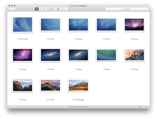 Während die meisten Mac-Nutzer die ich kenne auf ein eigenes Foto als Hintergrundbild für den Desktop wählen, liefert Apple seine MacBetriebssysteme mit jeder neuen Version seit Mac OS X 10.0 Cheetah mit einem neuen Standard-Hintergrund aus. Die Kollegen von 512pixels.net haben sich nun einmal die Mühe gemacht und sämtliche dieser Hintergründe in 5K-Auflösung zusammengetragen und zum Download zur Verfügung gestellt. Kamen dabei früher noch vor allem geschwungene Blautöne zum Einsatz, nahm Apple mit Mac OS X 10.5 Leopard erstmals eine deutliche Änderung vor und verwendete ein Sternenbild aus dem Weltall. Mit OS X 10.9 Mavericks verabschiedete man sich nicht nur von den Katzennamen, sondern auch von dieser Art von Bildern. Stattdessen kommen seither Namen kalifornischer Landschaften mit den zugehörigen Bildern zum Einsatz. Wer sich sämtliche Hintergrundbilder der vergangenen Jahre sichern möchte, kann sich diese nun direkt bei den Kollegen herunterladen.