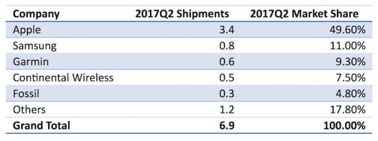 Jetzt wo Apple das diesjährige iPhone-Event angekündigt hat dürfte auch klar sein, wann wir die nächste Generation der Apple Watch zu Gesicht bekommen werden. Gerüchtehalber soll diese über eine LTE-Anbindung für Datenübertragungen verfügen, was sie sicherlich noch einmal ein ganzes Stück attraktiver machen wird. Bereits jetzt ist die Apple Watch aber schon mit großem Abstand das Maß aller Dinge auf dem Smartwatch-Markt. Geht es nach den Zahlen der Marktbeobachter von IDC, kam beinahe jede zweite Smartwatch, die im vergangenen Quartal verkauft wurde aus Cupertino. Einen Marktanteil von satten 49,6% soll die Apple Watch dadurch im Zeitraum April bis Juni erzielt haben. In absoluten Zahlen ausgedrückt sind IDC zufolge 3,4 Millionen Geräte dabei über den Ladentisch gegangen, was einen riesigen Vorsprung gegenüber Samsung mit 800.000 Einheiten auf Platz zwei bedeutet. (via MacRumors)