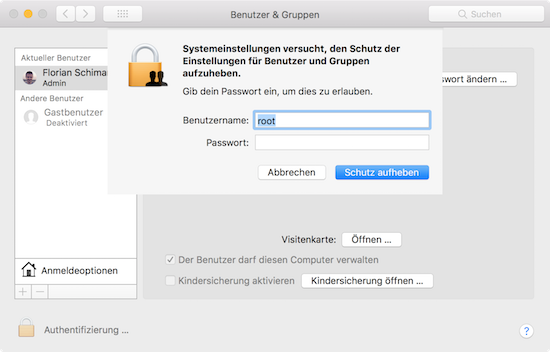 Bis dahin lohnt der Blick in ein Support-Dokument, in dem Apple das Aktivieren des eigentlich inaktiven root-Users beschreibt. Auf diese Weise lässt sich dieser mit einem Passwort versehen, was die oben beschriebene Vorgehensweise verhindert. Konkret sind dafür die folgenden Schritte notwendig: