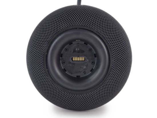 Ein spannender Fund von iFixit: Unter der aus Gummi bestehenden Bodenplatte des HomePod fanden sie einen versteckten 14-Pin Anschluss, dessen Zweck von Apple nicht beschrieben wird. Die Kollegen spekulieren, dass es sich um einen Test-, Programmier- oder Diagnose-Anschluss handeln könnte.
