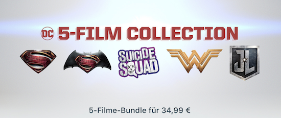 Noch ein wenig günstiger kommt man übrigens weg, wenn man sich gleich für die DC 5-Film Collection entscheidet. Hier bekommt man neben dem neuen Justice League Film auch noch die Blockbuster Wonder Woman (2017), Suicide Squad (2016), Man of Steel (2013) und Batman vs. Superman: Dawn of Justice zum günstigen Bundle-Preis von nur € 34,99! Ich wünsche gute Unterhaltung!