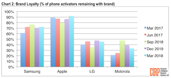 Wenig Veränderung gab es hingegen bei den Werten zur Marken-Treue, die in demselben Bericht erhoben wurden. Hier liegt Apple nach wie vor mit 90% auf dem ersten Platz, direkt vor Samsung. Beide Hersteller konnten in diesem Bereich leichte Zugewinne verzeichnen, während LG und Motorola leicht verloren haben.