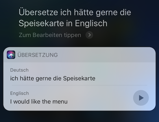 Siri kann ab iOS 12 auch deutsche Texte in andere Sprachen übersetzen