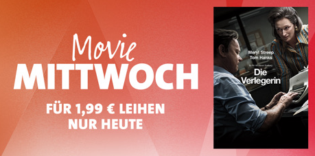 Auch heute hat Apple wieder den sogenannten "Movie Mittwoch" ausgerufen. Dabei wird jeden Mittwoch ein ausgewählter Film aus dem iTunes-Sortiment für 24 Stunden zum Sonderpreis von nur € 1,99 in 4K-HDR-Qualität zum Leihen angeboten. Heute erhält man dabei das preisgekrönte Drama Die Verlegerin mit Meryl Streep in der Rolle der Schefin der "Washington Post". Nachdem man den Leih-Film geladen hat, kann er innerhalb von 30 Tagen angeschauen werden. Wie immer bei geliehenen Filmen aus dem iTunes Store gilt: Hat man hiermit einmal begonnen, muss man ihn innerhalb von 48 Stunden beenden.
