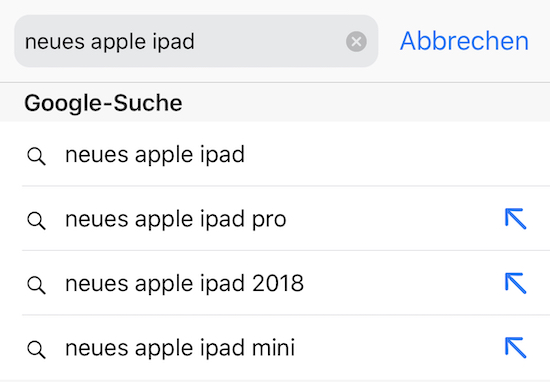 Unter den bislang gesichteten Neuerungen unter iOS 12.2 befindet sich auch eine für Safari, die ich an dieser Stelle gerne noch einmal gesondert in den Vordergrund stellen möchte. War es in Safari bisher immer so, dass wenn man in die Adresszeile einen Suchbegriff eintippte, unterhalb der Adresszeile entsprechende Vorschläge erschienen, die man durch bloßes Antippen für die Suchmaschinen-Suche übernehmen konnte. Ein wenig nervig dabei war jedoch, dass man lediglich den Vorschlag übernehmen konnte, woraufhin dieser auch direkt aufgerufen wurde, ohne das man Gelegenheit gehabt hätte, diese noch weiter zu verfeinern. Dies wird sich mit iOS 12.2 nun dankenswerterweise ändern.