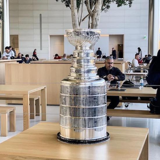 Als kleines Zuckerl brachte die NHL den Stanley Cup, also die Trophäe für den jährlichen Meister der Eishockeyliga am Mittwoch zum Apple Park, um Apple-Mitarbeitern die Möglichkeit zu geben, den beeindruckenden Pokal einmal aus der Nähe betrachten und Fotos mit ihm machen zu können.