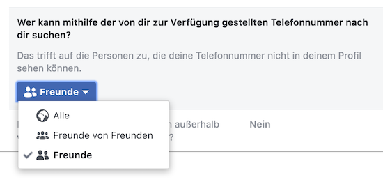 Möchte man das Auffinden des eigenen Profils über die Telefonnummer weitestgehend einschränken, kann man dies auf der Facebook-Webseite in den Einstellungen unter dem Punkt "Privatsphäre" tun. Hier findet Menüpunkt "Wie du gefunden und kontaktiert wirst" mit der Einstellung "Wer kann mithilfe der von dir zur Verfügung gestellten Telefonnummer nach dir suchen?", die man von "Alle" auf "Freunde" ändern sollte.