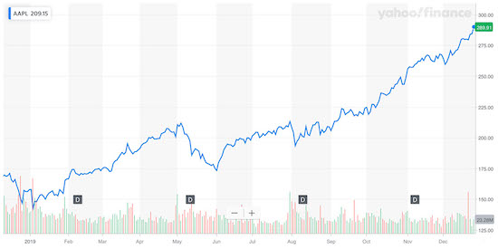 Apples Aktienkurs in 2019 mit der besten Entwicklung seit zehn Jahren