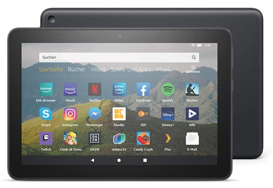 Das Fire HD 8 verfügt über ein 8" HD-Display, einen um 30% schnelleren Prozessor, 2 GB Arbeitsspeicher, einen doppelt so großen internen Speicher und eine Akkulaufzeit von bis zu 12 Stunden. Wie gewohnt, kann der Speicher mithilfe einer microSD-Karte um bis zu 1 TB erweitert werden. Das neue Fire HD 8 kann ab sofort über den folgenden Link zum Preis von € 99,99 bei Amazon bestellt werden: Das neue Fire HD 8-Tablet