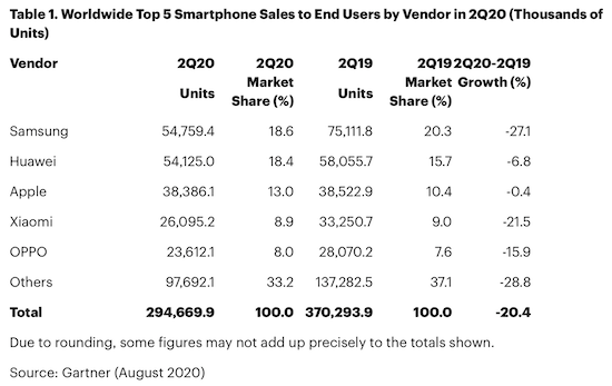Die überraschend guten Zahlen von Apple während der Corona-Krise beschäftigen weiter die Analysten. Nachdem gestern bereits vermeldet wurde, dass die Verkäufe des MacBook im dritten Quartal des Jahres um 20% gestiegen sein sollen, legen nun die Marktbeobachter von Gartner nach und berichten, dass sich auch das iPhone in diesen schwierigen Zeiten ausgezeichnet schlägt. Während der gesamte Smartphone-Markt um 20% einbrach, legte das iPhone ein im Rahmen der Umstände mehr als ordentliches Quartal hin und musste lediglich einen minimalen Rückgang um 0,4% im Jahresvergleich hinnehmen, wie Gartner ermittelt hat. Apple selbst hatte einen leichten Umsatzwachstum von 1.6% gegenüber dem Vorjahresquartal vermeldet, was hierzu passen würde.