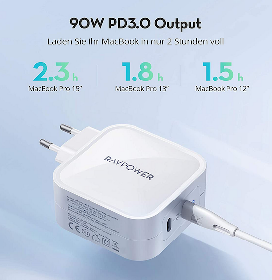 Darüber hinaus kann man heute auch ein äußerst interessantes Angebot bei Amazon in Anspruch nehmen. So findet man dort aktuell das RAVPower USB-C Ladegerät PD 90W zum absoluten Tiefstpreis von € 39,99. Ausgezeichnet ist das Ladegerät mit € 49,99, durch die Aktivierung des Coupons auf der Produktseite sinkt dieser jedoch noch einmal um weitere € 10,-. Wie der Bezeichnung schon zu entnehmen ist, bietet das Power-Delivery-Netzteil satte 90 Watt Leistung auf seinen zwei USB-C Anschlüssen. Dabei ist das Netzteil auch nochz äußerst kompakt. Nutzt man beide Anschlüsse parallel, verteilt das Netzteil seine Ladeleistung auf 60 Watt und 30 Watt bzw. 45 Watt und 45 Watt. Das Netzteil kann aktuell zum Preis von € 39,99 (bei aktiviertem Coupon) über den folgenden Link bei Amazon erworben werden: RAVPower USB-C Ladegerät PD 90W
