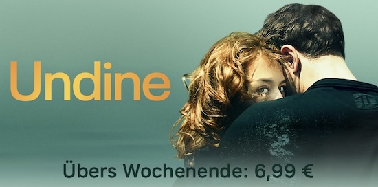 Darüber hinaus lässt sich das deutsche Drama Undine nur über das Wochenende zum Preis von € 6,99 käuflich im iTunes Store erwerben. Einmal gekaufte Filme lassen sich jederzeit erneut aus dem iTunes Store herunterladen und sind auf allen verbundenen Geräten uneingeschränkt nutzbar.