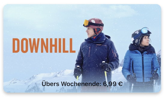 Darüber hinaus lässt sich die Komödie Downhill nur über das Wochenende zum Preis von € 6,99 käuflich im iTunes Store erwerben. Einmal gekaufte Filme lassen sich jederzeit erneut aus dem iTunes Store herunterladen und sind auf allen verbundenen Geräten uneingeschränkt nutzbar.
