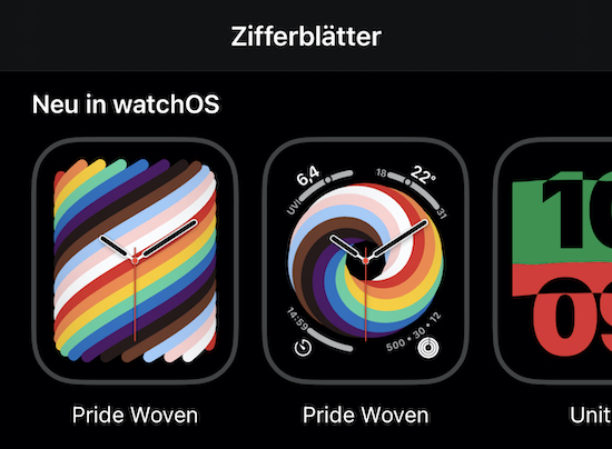 Zum ersten Mal integriert Apple auch die neue App Clip-Funktionalität in die Verpackung des Armbandes, um den Kunden eine einfache und bequeme Möglichkeit zu bieten, sofort auf das neue passende Zifferblatt zuzugreifen. Das 2021 Pride Zifferblatt findet man nach dem Update auf dem Zifferblatt-Reiter in der Watch-App auf dem iPhone.