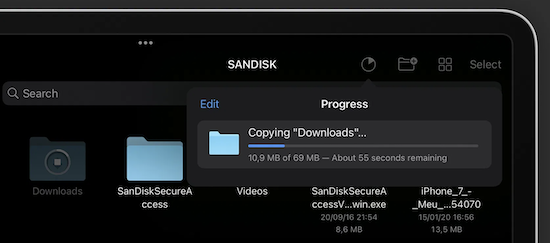 Unter anderem wird ein echtes Manko behoben. War es bei den bisherigen Versionen so, dass beim Download oder auch beim Kopieren von Dateien in kaum lesbarer Schrift unter den App-Icons der Fortschritt in Zahlen angezeigt wurde. Künftig wird Apple hier, wie vom Mac gewohnt, einen Fortschrittsbalken anzeigen. Auf Wunsch lässt sich der Vorgang dort auch abbrechen.