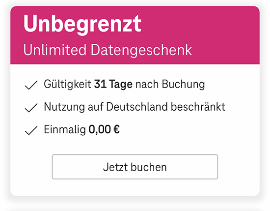 Der Juli begann ein wenig überraschend ohne das inzwischen gewohnte Datengeschenk in Höhe von 500 MB kostenlosem Zusatzvolumen für alle Mobilfunkkunden bei der Telekom. Offenbar war man beim Magenta-Konzern davon ausgegangen, dass die Deutsche Fußballnationalmannschaft bei der EM weiter als nur bis ins Achtelfinale kommen würde und man daher sein Datengeschenk auch weiterhin an die erzielten Tore der Mannschaft binden könne. Nun kommt es aber sogar noch besser, denn für die Urlaubszeit stellt die Telekom ihren Mobilfunkkunden nun 31 Tage Datennutzung ohne jede Volumenbegrenzung zur Verfügung. Gebucht werden kann diese ab sofort und noch bis zum 09. August.