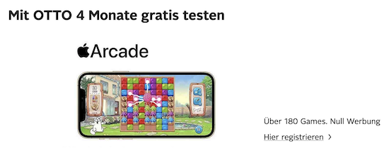 Habt ihr ein Abonnement für Apples Spiele-Flatrate Apple Arcade abgeschlossen? Egal wie die Antwort auf diese Frage ausfällt, gibt es nun die Möglichkeit in den Genuss von weiteren Gratismonaten des Dienstes zu kommen. Möglich macht dies eine Aktion des Versandhändlers Otto.de, der auf seiner Onlinepräsenz aktuell einen Gutschein anbietet, mit dem sich Apple Arcade vier Monate kostenlos nutzen lässt. Zumindest für den Fall, dass man den Dienst bislang noch nicht genutzt hat. Ist dies bereits der Fall gewesen, reduziert sich der Gratis-Zeitraum auf drei Monate. Erst im Anschluss daran werden die regulären Abogebühren in Höhe von monatlich € 4,99 fällig. Selbstverständlich kann man aber auch vorher wieder fristlos kündigen. Ausgeschlossen sind allerdings Nutzer von Apples Dienstepaket "Apple One". Wie lange die Aktion auf Otto.de verfügbar sein wird, ist nicht bekannt. Im Zweifel lohnt es sich also, sich die kostenlosen Monate schnell zu sichern.