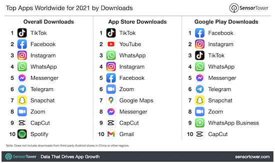 Social Media Apps dominierten auch in 2021 den weiterhin wachsenden App-Markt