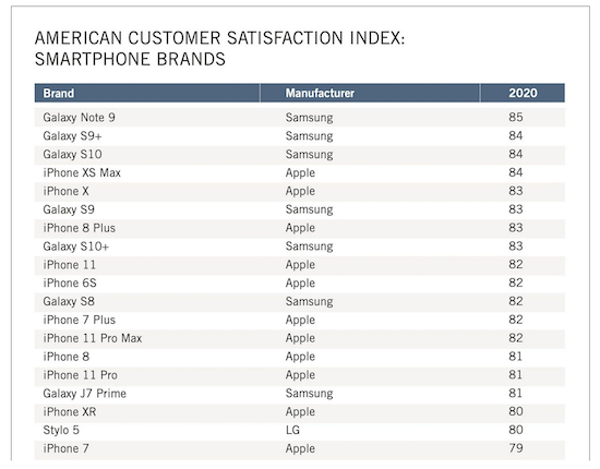 Apple weiterhin auf dem ersten Platz bei der Zufriedenheit von Smartphone-Nutzern