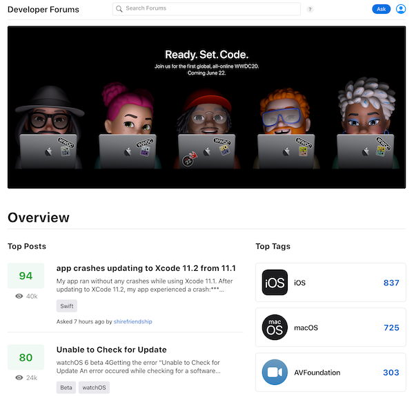 Wie angekündigt, hat Apple im Vorfeld der am Montag beginnenden Entwicklerkonferenz seine Developer Forums überarbeitet. Die neue Version steht seit der vergangenen Nacht online. Das neue Design wirkt dabei deutlich aufgräumter und einfacher zu nutzen. Unter anderem ist es nun deutlich einfacher, relevante Posts und Themen und damit auch die gesuchten Informationen zu erhalten. Die Developer Forums sind ein wichtiger Ort für Entwickler von Apps für die Apple-Plattformen und führen Entwickler aus der ganzen Welt zusammen. Auch Apple-Ingenieure beteiligen sich regelmäßig an den Diskussionen. In der neuen Version haben nun auch alle anderen Nutzer die Möglichkeit, nach Informationen zu suchen, während Mitglieder im Apple Developer Program auch Fragen stellen können.