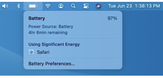 Ebenfalls mit der Einführung des 2016er MacBook Pro hatte Apple auch die Anzeige der errechneten Restlaufzeit des Akkus abgeschafft und zeigt die restliche Akkulaufzeit seither nur noch in Prozent an. Mit macOS 11 Big Sur wird nun auch diese Anzeige zurückkehren. Offenbar hat Apple einen genaueren Weg gefunden, um die möglichst exakte Zeit bis der Mac sich ausschaltet zu berechnen.