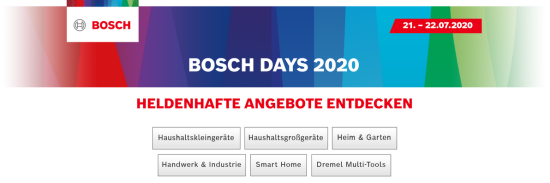Ich selber befinde mich gerade mitten in einem Umzug, weswegen der Bedarf an verschiedenen Werkzeugen bei mir im Moment außerordentlich groß ist. Zudem nutzen viele Menschen auch die aktuelle Corona-Krise dazu, um die eigenen vier Wände oder auch den heimischen Garten mal ein wenig auf Vordermann zu bringen und die eigenen Handwerkskünste zu demonstrieren. Da kommt das heutige Angebot auf Amazon gerade recht, bei dem sich verschiedene Produkte des hochwertigen Herstellers Bosch zu deutlich vergünstigten Preisen erwerben lassen. Auch wenn dies im engeren Sinne nichts mit Apple zu tun hat, daher an dieser Stelle trotzdem der Hinweis auf die aktuell bei Amazon laufenden "Bosch Days 2020", bei denen die meisten von euch sicherlich das eine oder anderem Heimwerkzeug finden, welches sie sich immer schon mal zulegen wollten. Der folgende Link führt direkt zur Landingpage der Aktion: Bosch Days 2020 bei Amazon